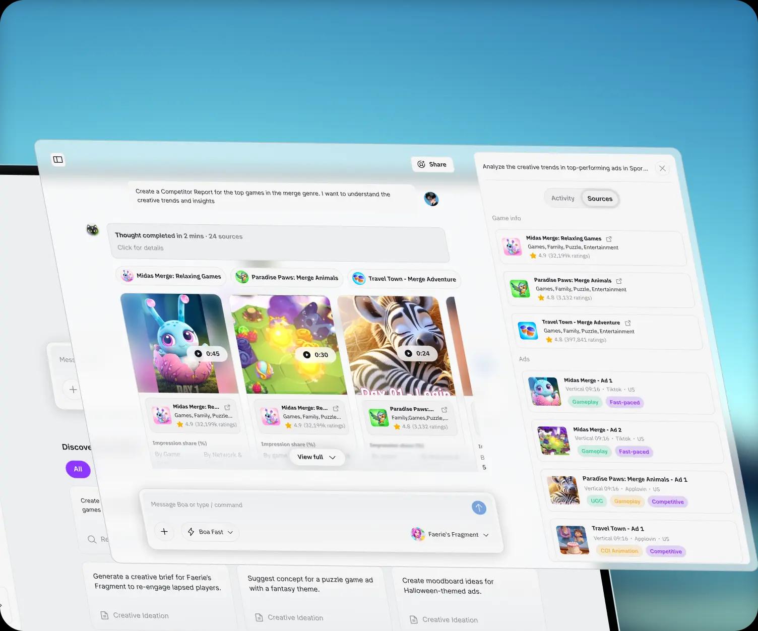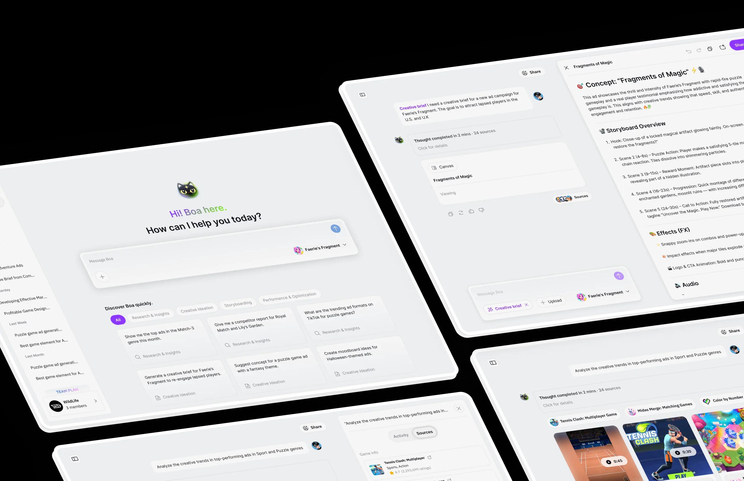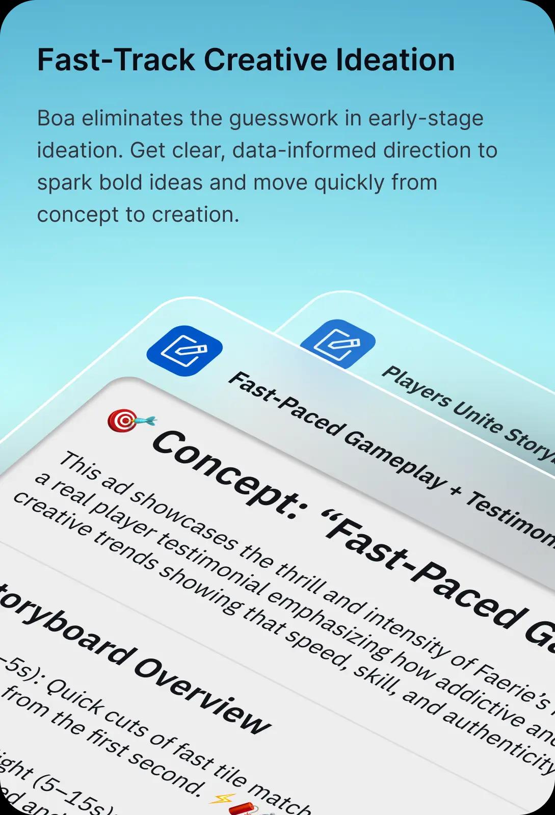 Start by using Boa to uncover what’s working, and what’s not, across genres, geographies, networks, and even competitors. Powered by massive creative and performance datasets and cutting-edge models, Boa delivers deeper insights than any other platform.